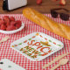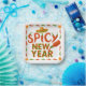 Celebrate the New Year with this fun festive holiday plates. Delight friends and co-workers with this whimsical design of flame emojis with red and green chili peppers that spell out "Spicy New Year", a sombrero on top and hot sauce pouring out over the year. Your friends will get a kick out of these plates while they join you for some fun ringing in the New Year. Matching napkins, cups, keychains, stickers, magnets and coasters available as well.