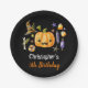 Spooktacular Halloween Bash Kids Birthday Fiesta Black Paper Plates. Para una mayor personalización, haga clic en el botón "Personalizar" y utilice nuestra herramienta de diseño para modificar esta plantilla.