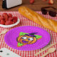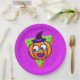 Decorate your Halloween themed party with these cute purple party plates, featuring a pumpkin in a witch hat with bold and bright 90's inspired patterns. Great for kid's Halloween parties, birthdays, and just for fun.