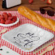 Sr. y Sra. con una letra de escritura negra con una tostada de champán sobre damasco de satén blanco. El nombre y la fecha de boda son modificables.