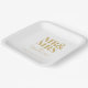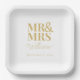 Mr. & Mrs. Minimal Simple Modern Disposable Placas De Papel Cuadrado. Personalice la plantilla con su apellido y fecha de su boda, compromiso o aniversario. Perfecto para la cena de ensayo, la fiesta de compromiso o la recepción de boda. Viene con opciones rosa, negro, blanco, dorado y marrón.