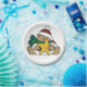 Un oso vestido de invierno sostiene una estrella amarilla. Este diseño parece realmente efectivo en estas placas de papel