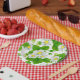 Pinté hojas de fresa, flores y fruta con acuarelas, luego escaneé la pintura e hice un patrón a partir de ella