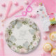 Diseñado para servir como plato a la hora de la cena en un Té de Ducha Bridal u otras duchas románticas con temática, o para emparejar los platos de postre más pequeños que vienen en una variedad de colores bordeados. Se ha creado a partir de arte fino, con cuadros en tonos pastel e imágenes pintadas a mano por Audrey Jeanne Roberts. Estos rosas son muy delicados mezclados con rosas, toros de hojas en apenas ahí rosado y crema suave con hojas suculentas en un verde gris. Invitaciones, rsvps y elementos de decoración de mesa que se pueden personalizar con el nombre de la novia y se puede elegir el color de fondo. Sólo tiene que seleccionar "personalizar" y buscar la herramienta de selección de color de fondo o colocar un hex# para que coincida perfectamente.