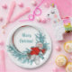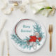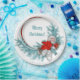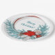 Sucursal congelada de Navidades azules de hielo Sucursal Red Poinsettia Elegante Navidades Fiesta Plate de papel, puedes cambiar o borrar el texto personalizado Feliz Navidad