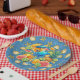 A Paper Party Plate Designed With A Summer Beach Party Theme With Summer Fruits, Drink and Seashells