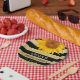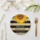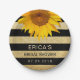 Plato De Papel Sunflower Bridal Shower Moderno Black & Gold Strip