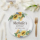 Plato De Papel Sunflowers Eucalyptus Woman's Birthday Name Date