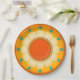 Este brillante y alegre plato de papel transforma nuestro diseño "Día soleado" con su profundo amarillo, dorado, naranja, blanco y un toque negro en un motivo que recuerda a un nativo americano "captador de sueños" con la adición de profundos medallones turquesas. Perfecto para empezar bien la mañana o para terminar una gran velada de verano compartiendo pastelitos y Schnapps con amigos.