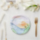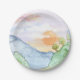 Plato De Papel Sunset acuarela sobre montañas y árboles