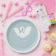 Este lindo y moderno plato de papel para el cumpleaños de un chica tiene un cisne con una corona sobre un fondo azul claro enmarcado por un borde blanco. Personalízalo para tus necesidades. Puedes encontrar productos coincidentes en mi tienda.