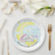Un encantador ilustracion acuático de un elefante bebé que duerme tranquilamente sobre una luna creciente, rodeado de nubes esponjosas y estrellas pastel brillantes. La suave paleta de colores amarillos, azules y rosas crea un ambiente de ensueño y capricho, perfecto para una ducha de bebé. Ideal para una celebración de género neutro o de bebé, este diseño evoca calidez, amor y la expectativa de recibir a un pequeño nuevo.