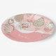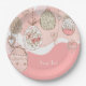 Platos de papel rosa pastel, blanco y marrón claro de Pascua con huevos ornamentados de corazones colgantes. Los huevos tienen una decoración floral y giratoria. Diseño elegante y dulce perfecto para la primavera. Personalizar con un nombre u otro texto, o borrar si no prefiere texto.