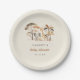 Placas de papel de Baby Shower con un grupo de adorables animales de la selva acuarela (elefante, jirafa, meerkat y leopardo) y árboles en tonos tierra. Haga clic en el botón "Personalizar" para editarlo con su propia información.