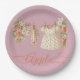 Add a cozy orchard touch to your fall baby shower with this red apple clothesline design. A sweet and rustic paper plate perfect for celebrating your little one in charming autumn style.