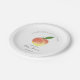 Estos dulces platos de papel de melocotón son perfectos para cualquiera que celebre una ducha de bebé este año. El diseño presenta un durazno de color agua pintado a mano sobre un fondo blanco sencillo con un texto de plantilla fácil de personalizar.
