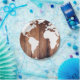 Plato De Papel Tablas de madera oscura rústica y mapa mundial bla