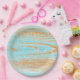 Plato De Papel Tablero Con Algas En Azul Y Naranja