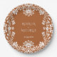 Terracota vintage Talavera mexicana boho boda monogramada plantilla de platos de papel personalizados, platos de papel de boda personalizados, terracota marrón y blanco decoración de mesa de boda mexicana arte popular Talavera