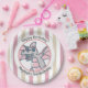 Plato De Papel Tan rosado estriba con un dragón rosado Cumpleaños