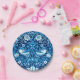 Plato De Papel Tapiz Art Nouveau de aves y flores, azul oscuro