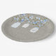 Platos de papel para baby shower con tarros de mason azules y arpillera rústica con una rama de flor de cerezo azul y tarros de mason. Puedes agregar texto a los tarros y cambiar el texto en el corazón.