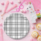 Plato De Papel Tartán Tapado Blanco Con Líneas Negras
