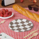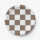 Placa de papel con estampado marrón y blanco a cuadros. Perfecto para cualquier reunión.