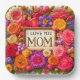 Estos platos de papel dicen "Te amo, mamá" en ellos.