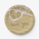 Plato De Papel "Te amo" Corazón escrito en arena