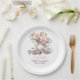 Plato De Papel Té de Almuerzo de Boda de Rosas Rosadas Sonrojadas