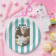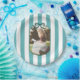 Teal green graduation with trendy stripes and ribbon bow. Photo template via Pixabay licensed under CC0 and must be replaced with your own photo.