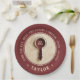 Sumérjase en la emoción de nuestra aventura vintage de sala de escape con este diseño de placas de papel personalizado, diseñado para capturar la emoción del evento. Con un fondo clásico de papel vintage, el plato prepara el escenario para una experiencia inolvidable. En el centro, una lágrima con forma de llave añade un toque de intriga, simbolizando el desafío y el misterio de la sala de escape. El plato está adornado con un borde borgoñón y un texto beige de personalizable, lo que le confiere un toque personal. Este plato sirve como un recuerdo único de la diversión y el trabajo en equipo que compartimos. ¡Gracias por ser parte de la aventura!