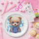 Placas de papel personalizadas para incluirlas como parte de la celebración de la ducha de bebé. Si buscas una decoración de fiesta de ducha para bebés, no dudes en probar este plato de fiesta de ducha azul turrón. Utilice la plantilla para personalizar la placa de papel con el nombre de la futura madre.