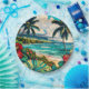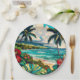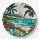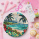 Arte pop estilo libro de historietas en la isla hawaiana. Vacaciones o viajes de placas de papel temático. Bonito para una fiesta de cumpleaños con temática tropical.