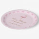 El Adorable diseño personalizado de flamenco rosado presenta un fondo rosa claro en un borde de arcos rosas. La imagen en el centro del diseño consiste en un flamingo rosa bonito listo para dar la bienvenida al bebé. El nombre del bebé y la fecha de vencimiento se muestran debajo en una fuente dorada de bonito. Diseñado para acompañar las invitaciones a la ducha con temas "It's a Chica Pink Flamingo" y los accesorios de guardería.