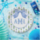 El diseño de esta placa topiaria presenta un fondo de enrejado azul y verde muy moda con un arco de rayas coordinadas azul y blanco. Puede personalizar con sus iniciales de monograma.