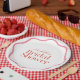 Esta de moda, retro, y moderna placa de papel para la fiesta de despedida de soltera cuenta con un fondo blanco con un marco ondulado rosa. Puedes personalizarla según tus necesidades. En mi tienda puedes encontrar productos que combinan.