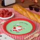 Fun tennis Christmas holiday party or event plates featuring Santa playing tennis and funny tennis-themed line.