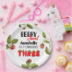 Cute el tema de fresa planchas de papel de tercer cumpleaños, edite el texto usted mismo al pedir