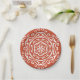 Esta mandala blanca se sienta sobre un fondo naranja oscuro. Los colores son creativos y cálidos. Parte de la colección Pympbys Mandala.