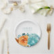 Plato de papel boho de otoño terracota naranja y verde turquesa
