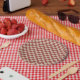 Plato De Papel Terracotta and Tan Checkerboard