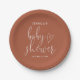 Este elegante guión de terracota se puede personalizar con el nombre y la fecha de ducha de un plato de papel para bebé neutro en género. Diseñado por Thisisnotme©