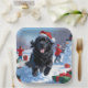 Un majestuoso Perro de Terranova recorre el paisaje nevado, jugando con un gorra festivo de Navidades rojos. La escena capta la fuerza, lealtad y encanto del gentil gigante mientras refleja la alegría y calidez de la temporada navideña. Un alentador momento de invierno lleno de espíritu festivo.