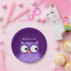 Personalizado De Lechuza Púrpura A01C Fondo PURPLE. El plato de papel con temática de búho es una elección dulce para una fiesta de cumpleaños. Agrega tu texto.