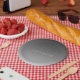 Plato De Papel Texto elegante sobre degradado simple de color gri