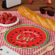 texto personalizado e imagen uno en placas de papel de fruto rojo melón.