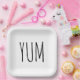 Texto de YUM negro contemporáneo sobre fondo blanco. Se puede cambiar el color de fondo. El texto es editable.