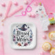 Estos caprichosos platos fiestas cuentan con una divertida acuarela floral con las palabras Blessed Be Witches.